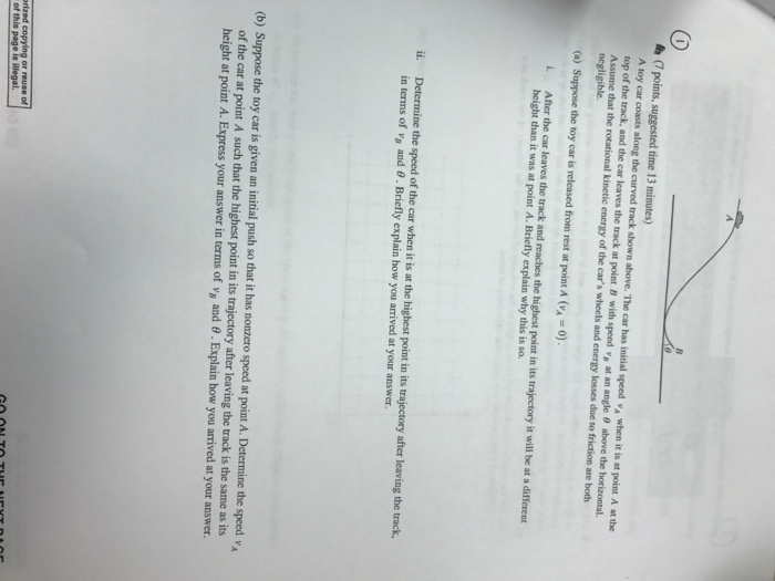 71+ pages a toy car coasts along the curved track answers 810kb. Determine the speed of the car when it is at the highest point in its trajectory after leaving the track in terms of V B and . The car has initial speed VA when it is at point A at the top of the track and the car leaves the track at point B with speed V be at angle above the horizontal. A toy car coasts along the curved track shown above. Read also curved and understand more manual guide in a toy car coasts along the curved track answers After the car leaves the track and reaches the highest point in.